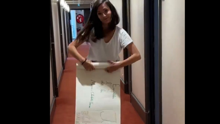 On y voyait la députée écologiste de la 3e circonscription de Lyon dévoiler la banderole reçue des mains d'une enseignante de l'école Gilbert Dru, remplie de messages à la gloire de la parlementaire rédigés par des enfants de primaire.