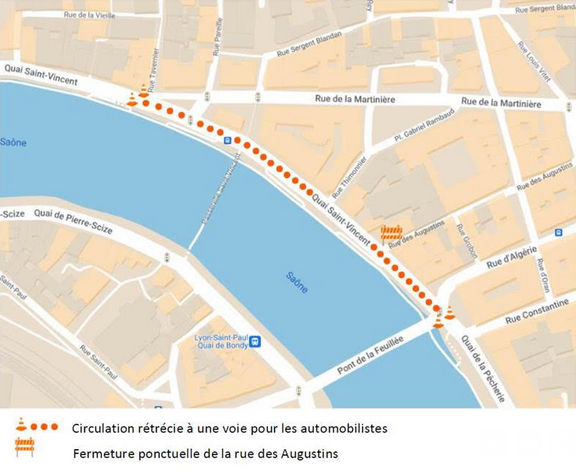 Le quai Saint-Vincent étant un passage important de bus, les déviations et perturbations seront annoncées sur le site internet des TCL.
