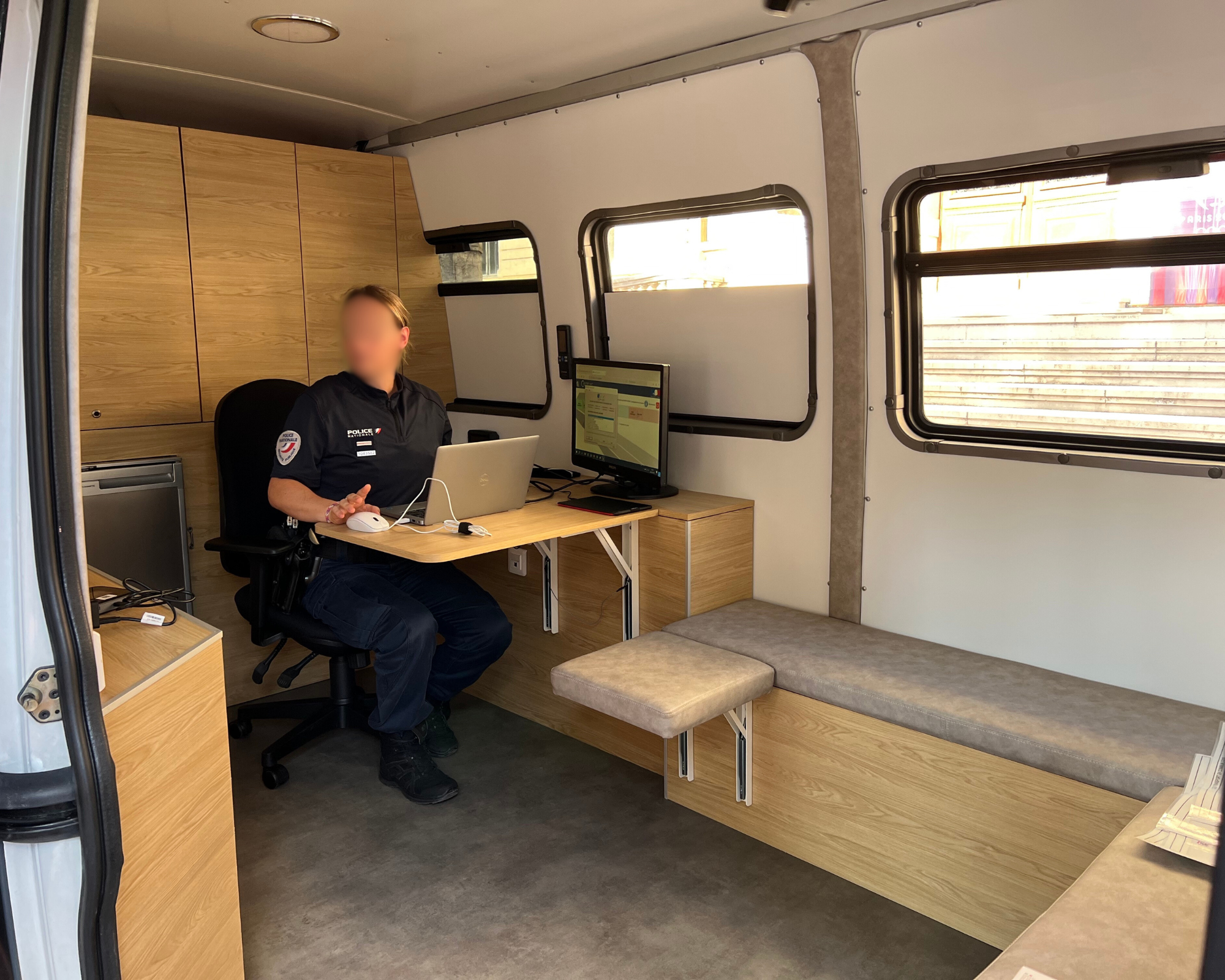 L’objectif principal de ce véhicule sera de pouvoir prendre des plaintes et de fournir des informations en tout lieu. "Ça ressemble typiquement à un bureau de commissariat", témoigne Élodie, Officier de Police Judiciaire.