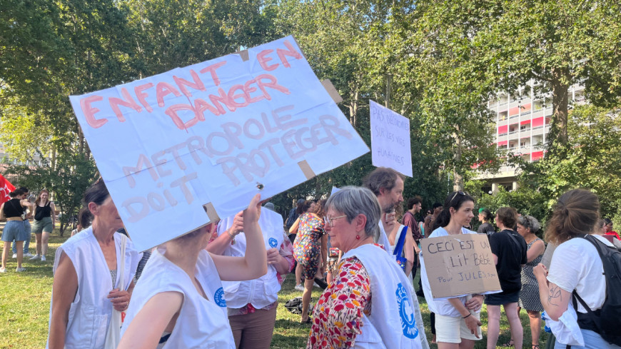 "Enfants en danger, Métropole doit protéger", "Bébé + vie à la rue = danger", "Ceci est un lit bébé pour Jules, 3 mois", tant de pancartes en carton qui montrent la colère des professionnels de santé, des travailleurs sociaux et des citoyens venus en soutien. Parmi eux, Françoise, agricultrice dans la région lyonnaise : "Je suis venue car je ne peux pas accepter l’inacceptable".