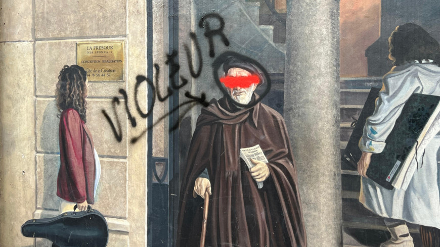 Ce n'est pas la première fois que la Fresque des Lyonnais est visée. Mais d'ordinaire, ce sont plutôt de petits plaisantins qui rajoutent des moustaches aux personnages. Le dernier tag polémique remonte à 2017 après une manifestation de l'extrême-gauche qui avait tagué "Enti FN" (sic) à côté de Paul Bocuse.