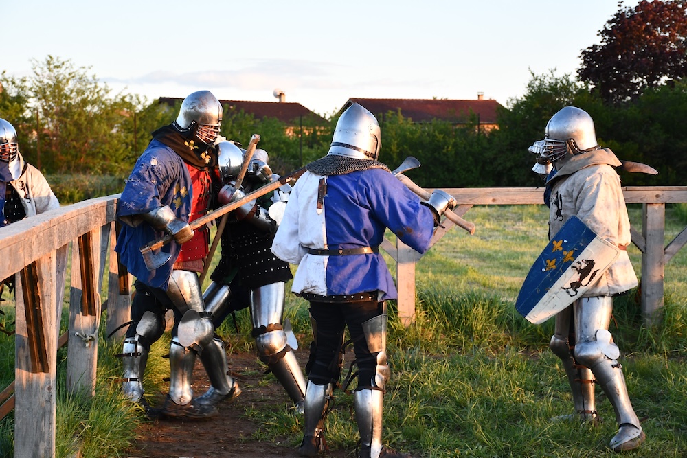Ici, on pratique le béhourd, tiré du vieux français "fracas". C’est une forme de combat médiéval, qui est une adaptation contemporaine d’une pratique sportive et guerrière ancienne. Ce sport implique l’utilisation d’une armure complète et d’armes (épées, haches et boucliers) ni pointues, ni tranchantes car émoussées. Toutes doivent correspondre à l’époque du Moyen-Age.