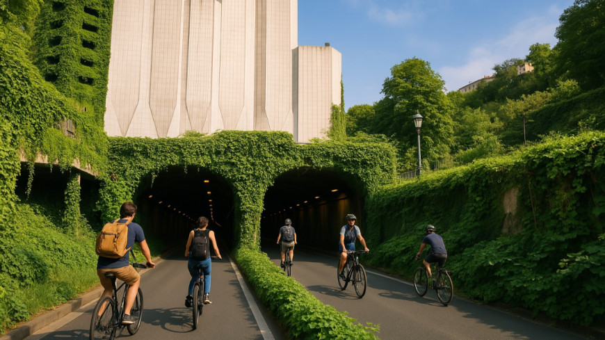 J'aime bien l'image post apocalyptique du tunnel de Fourvière avec quelques zombies à vélo.