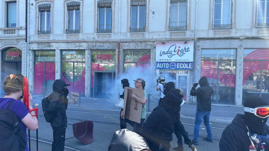 Les locaux du siège du promoteur immobilier 6e Sens sont forcés, le quai est inondé de lacrymogène à Lyon pic.twitter.com/CGKtvhHGDA