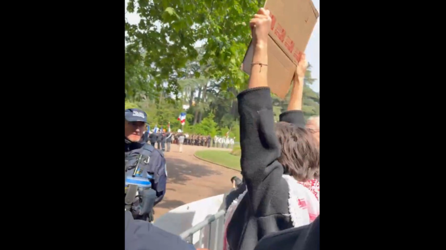 Et c'est ainsi qu'une personne s'est frayée un chemin jusqu'aux barrières pour interpeller les élus et les militaires sur le conflit israélo-palestinien. Avec une pancarte et un keffieh, cette femme a lancé "Vous êtes les complices d'un génocide" avant d'être rappelée à l'ordre par la police municipale.