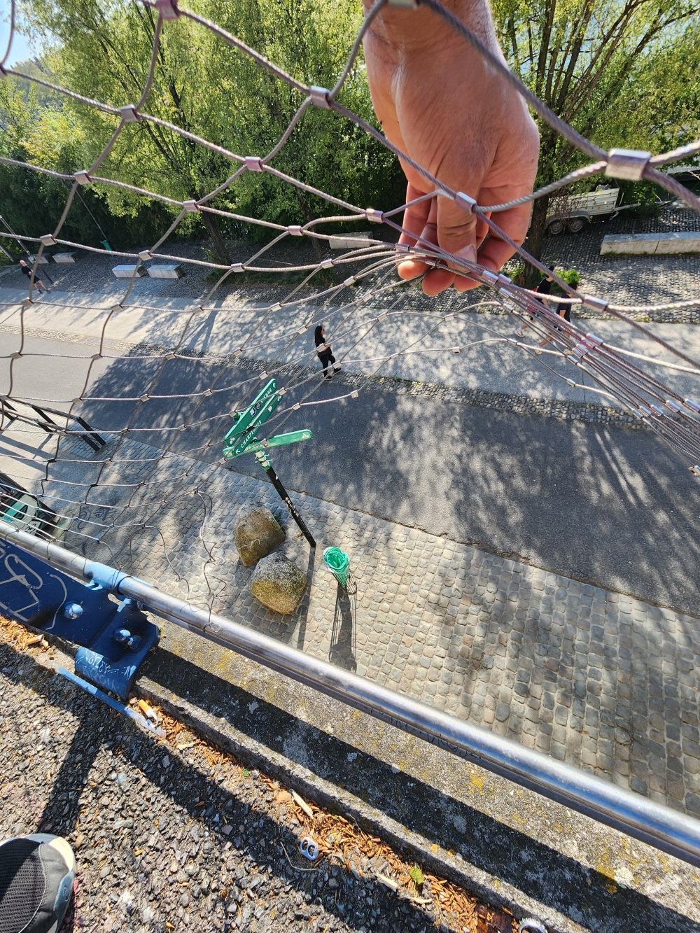 A ce niveau sur le quai Sarrail, il n'y a pas de parapet pour protéger d'une chute sur les berges du Rhône, mais un simple grillage.