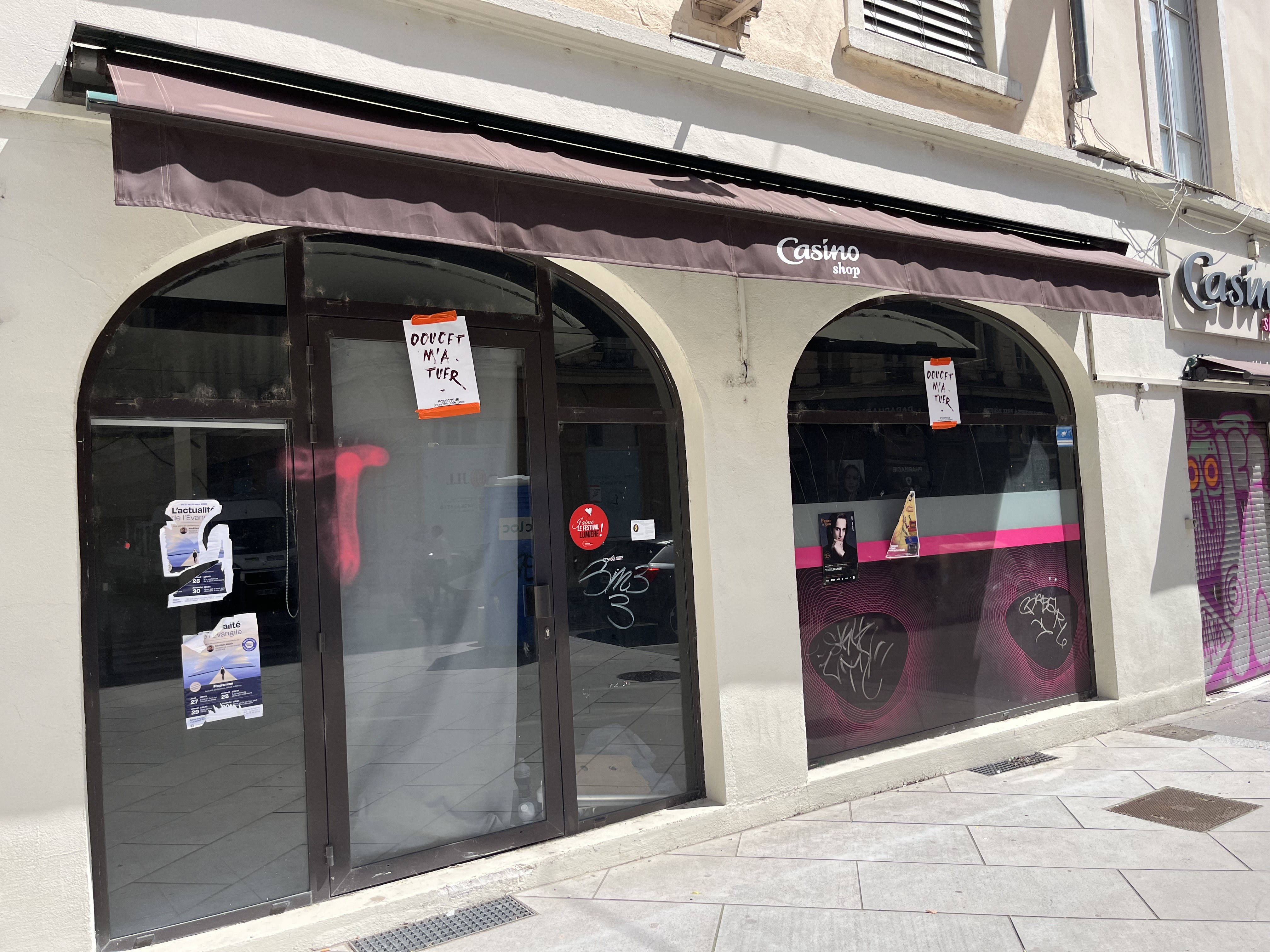 Les anciens Casino Shop, Grimpeurs, Cripers, JLL ou encore l’ancienne sommellerie John Euvrard possèdent ces affiches. Tous ont également une autre inscription sur leur devanture, celle de l’agence immobilière Omnium, décrivant la disponibilité des locaux.