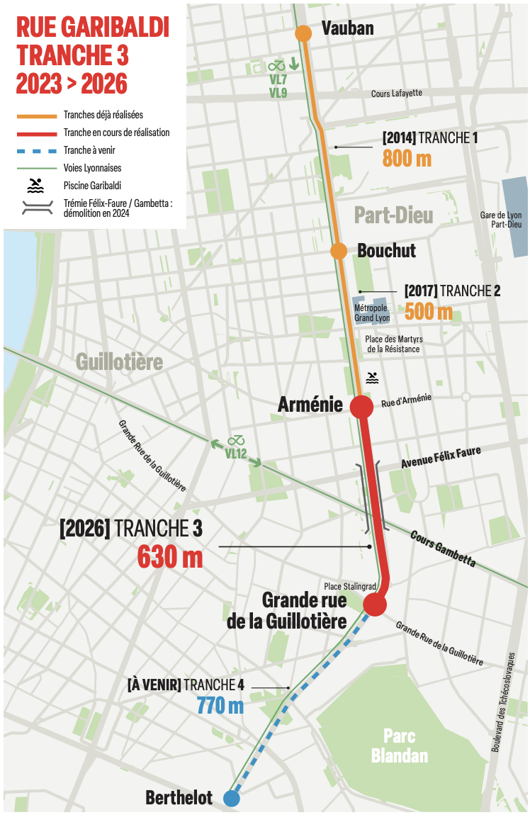 Signaler Répondre"Le réaménagement de la troisième tranche de la rue Garibaldi, démarré au printemps 2024" La 1° tranche commencée sous le mandat Collomb il y a 15 ans ! A quand la fin de la 4° tranche sans les khmers !