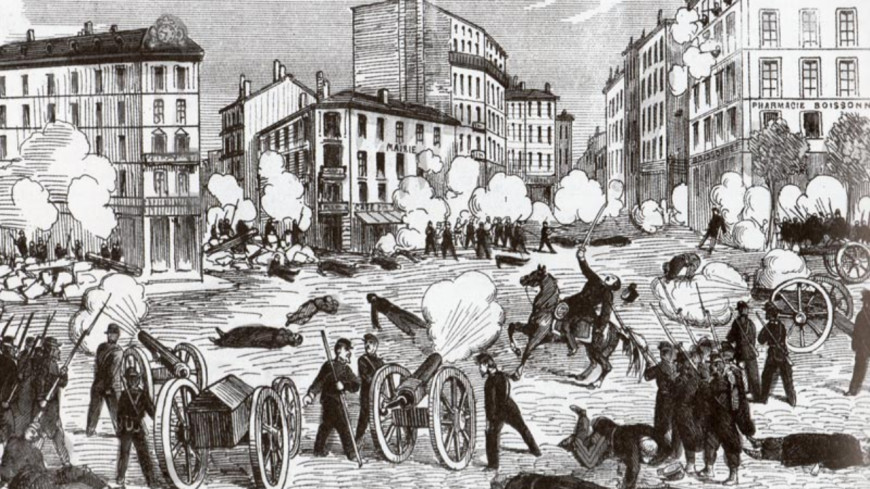 À cette époque, le maintien de l'ordre incombait à l'armée. les Cuirassiers ont chargé sur le cours des Brosses (aujourd'hui cours Gambetta) et, pendant longtemps, on put voir à l'entrée de la rue de la Guillotière une enseigne criblée de balles. IL faut remarquer que Lyon fut l'une des rares villes qui eussent fait échu aux évènements de la Commune de Paris.