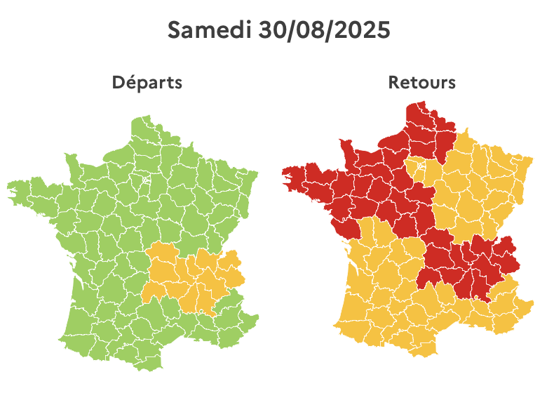 Dimanche 31 août, la situation s’améliorera nettement. Seul le nord-ouest du pays restera classé en orange dans le sens des retours, avec des difficultés attendues sur l’A10, l’A11 et l’A13, notamment à l’approche de l’Île-de-France.