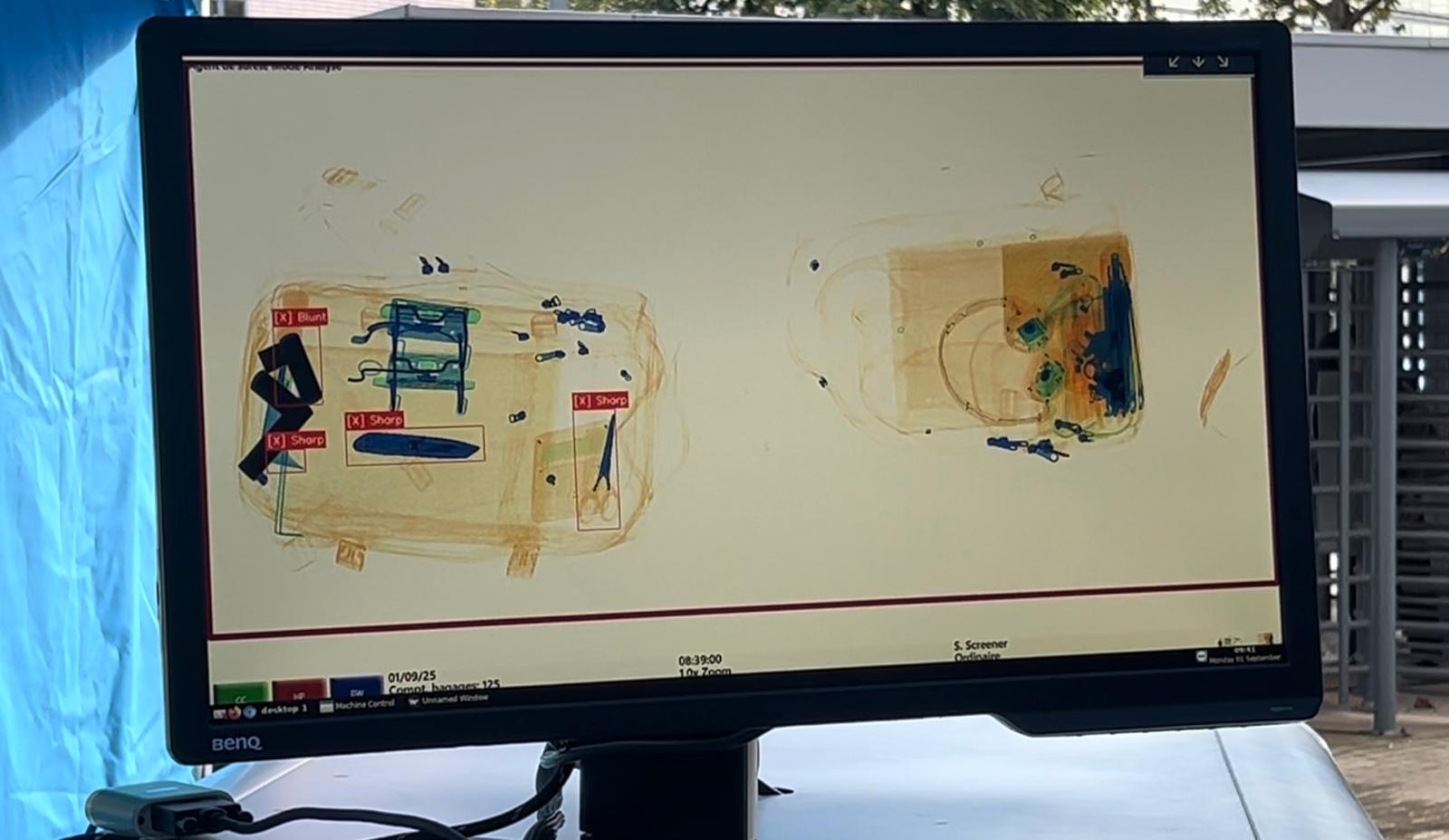 Équipé d’une intelligence artificielle, le scanner affiche par code couleur les formes ou matières potentiellement dangereuses, comme le métal ou la céramique. Malgré quelques visages tendus, le passage s’est effectué sans "bouchon", de manière fluide.