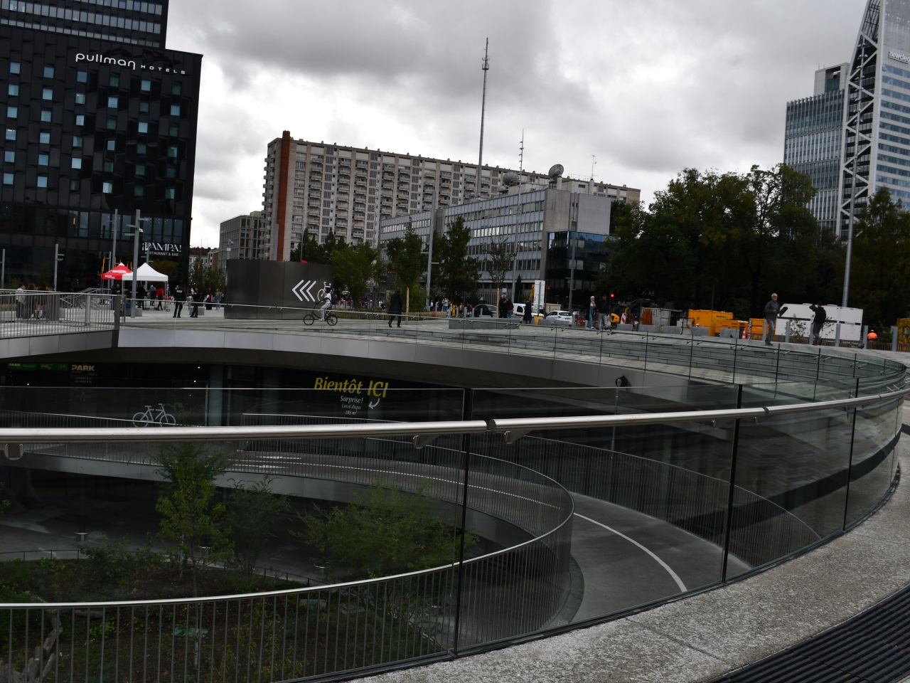 Mais la transformation ne s’arrête pas en surface. En sous-sol, la “place basse” concentre les services liés aux déplacements : un accès direct au métro B, une vélostation de 1500 places, un pôle taxis et un parking de plus de 1000 emplacements.
