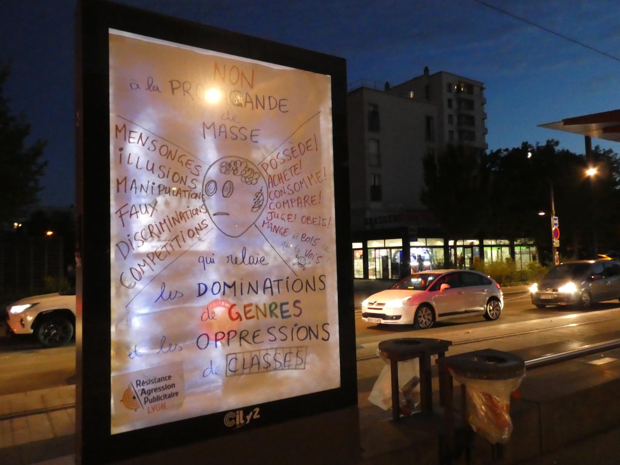 Etonnant cette façon de se faire entendre pour des militants anti-pub qui utilisent les panneaux publicitaires !