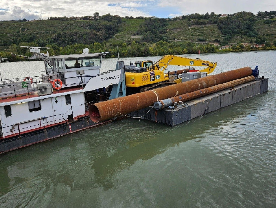 Fermé depuis le 6 mai, le pont ne devrait pas rouvrir avant mi 2026. Selon le Département, "les travaux de préparation des sous-sols, commencés début septembre, ont entamé une nouvelle étape : le battage des tubes." Cette opération consiste à "enfoncer des tubes de 25 mètres de long dans le fond du lit du Rhône sur une profondeur de 7 à 8 mètres à l’aide d’un appareil spécifique (le vibro-fonceur)."