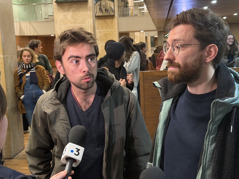 Deux journalistes sur les trois mis en examen étaient présents pour comparaître, à savoir Moran Kerinec, pigiste, ainsi que Pierre Lemerle, directeur de la publication.