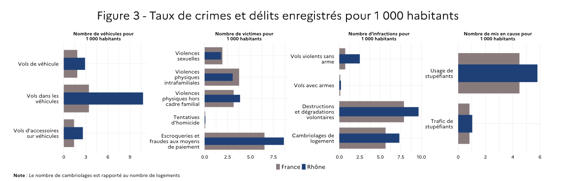 Si l’impact de la plainte en ligne est réel, il ne suffit toutefois pas à expliquer les écarts observés avec d’autres départements. Ce dispositif est en effet déployé sur l’ensemble du territoire national. Or, dans le Rhône, les taux dépassent très largement les moyennes françaises sur de nombreux indicateurs, plaçant le département parmi les plus criminogènes de France.