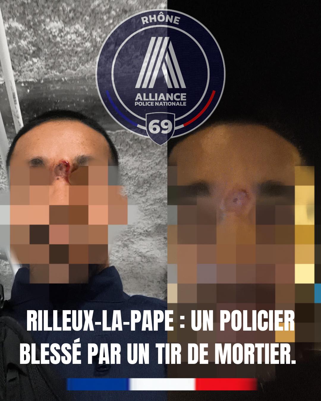 Des jets de pierres et des engins explosifs ont été lancés en direction des policiers. Au cours de l’attaque, plusieurs mortiers d’artifice ont été tirés en direction des fonctionnaires. L’un d’eux a été touché en plein visage, entre les deux sourcils, à quelques centimètres des yeux.