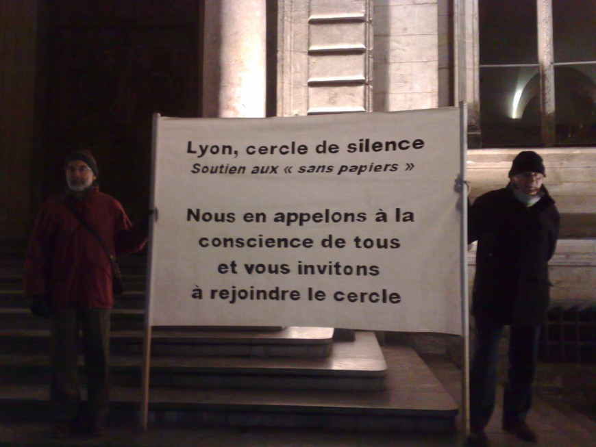 Ces rassemblements se font à l'appel, entre autres, du Réseau Éducation sans Frontières, de l'Union Juive Française pour la Paix, de l'Antenne Lyonnaise de la Fédération Protestante de France, de la famille Franciscaine et de la Cimade. Une cinquantaine de participants se sont réunis ce mercredi aux Terreaux en un "cercle de silence" pour dénoncer la politique "du chiffre" menée par le gouvernement. Le prochain rassemblement de ce type aura lieu le mercredi 15 décembre, au même endroit, de 19h à 20h.