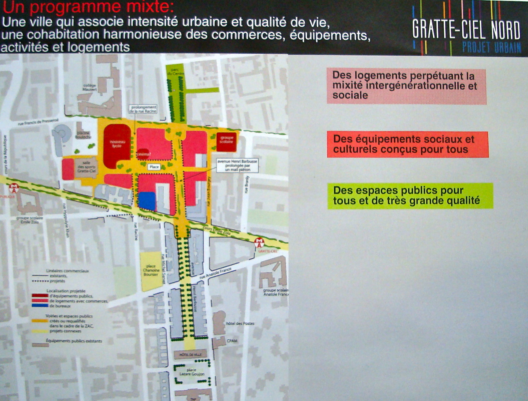 En tout , ce sont 25 000 m2 d’espaces publics qui seront créés ou réaménagés, 70 000 m2 seront réservés à l’habitat - représentant 900 logements dont 25 % réservé au social et à l’accession sociale à la propriété - 4 000 m2 préemptés pour les bureaux et de 20 000 à 24 000m2 d’espaces commerciaux. Jean-Paul Bret souhaite ainsi mettre un terme à l’évasion commerciale sur le non-alimentaire, qui touche 75% des villeurbannais. L’espace dédié au commercial n’a pas été décidé au doigt mouillé, mais a fait l’objet d’une étude de la part de la CCI de Lyon et d’un cabinet privé. L’espace dédié aux habitations sera délivré par lot aux investisseurs, selon le modèle de la Confluence, via un concours et une concertation générale. Le cahier des charges prend déjà forme, et les immeubles ne devront pas dépasser 50 mètres, en privilégiant les jardins suspendus, qui ornent déjà les constructions de l’avenue Henri Barbusse.
