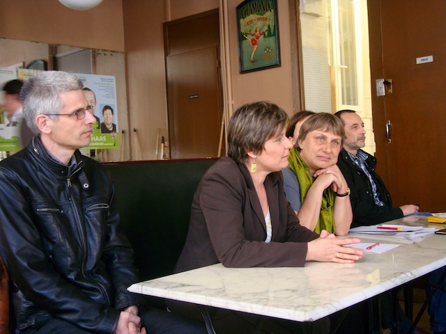 Philippe Meirieu en chaperon, les cinq candidats des cantons de Villeurbanne-Centre, Vaugneray, le Bois d’Oingt, Lyon 3 et Lyon 11 ont choisi la Place Sathonay (Lyon 1er) pour tenir leur première conférence de presse d’entre-deux tours. Attendus notamment sur la question de l’entente avec les socialistes, Philippe Meirieu, dans sa présentation liminaire, expose un degré des priorités différent avec en incipit la question du FN au second tour. Qu’il impute au « climat social basé sur l’élimination du maillon faible », mis en place par Sarkozy. Alors, sans ambages, le président du Conseil fédéral d’Europe écologie-Les Verts appelle « à barrer la route au FN pour le second tour. » Du point de vue des résultats de son parti, il se montre satisfait, avec 195 000 voix en plus par rapport aux Cantonales de 2008. Nonobstant selon lui « une élection injuste », qui tranche au scrutin uninominal à deux tours. Pour un seul élu au final. A la différence des scrutins de liste qu’ont su valoriser les Verts, pour les Régionales de 2010 par exemple, en intégrant confortablement la majorité Queyranne au Conseil régional de Rhône-Alpes.