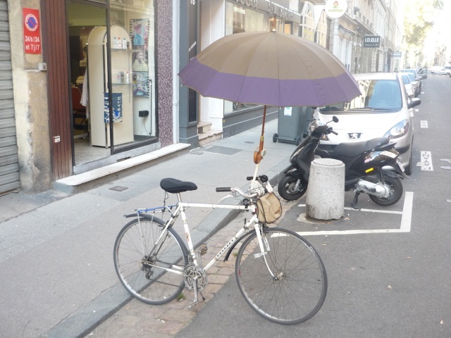 Bernard Chlous a deux amours: le Japon, qu'il a découvert quand son fils a choisi d'y vivre et d'y travailler, et le vélo, avec lequel il se déplace en permanence. Lors d'un voyage au Pays du Soleil Levant, il a découvert un objet dont l'esprit nippon a le secret, le porte-parapluie. Fort de son implication dans le développement des pistes cyclables à Lyon via son association "Onroulou???", ce barbier de profession a donc décidé de le faire venir en France. Moyennant 39 euros, il propose donc aux lyonnais de faire l'acquisition de cette invention baptisée Kasamotte (littéralement la main de parapluie), produit par une société d'Osaka. Il s'agit d'un petit bras articulé que l'on fixe au guidon de sa bicyclette, et qui permet de rouler avec le parapluie ouvert et donc d'éviter les gouttes. Ce porte-parapluie ne fonctionne pas avec les parapluies pliables dont le manche est trop petit. Il faut disposer d'un parapluie avec un manche droit ou une poignée afin de le fixer dans la pince réglable qui surmonte le bras de l'objet. Afin d'éviter que le parapluie ne se retourne en route, mieux vaut également que les baleines de celui-ci soient résistantes. La tête est amovible et permet donc d'orienter le parapluie vers l'avant ou vers l'arrière, en fonction de la trajectoire des gouttes. Ce porte-parapluie se monte facilement entre les deux-poignées du guidon, il est livré sous emballage japonais mais Bernard Chlous propose un mode d'emploi en Français. En bonus, il est livré avec un petit anneau qui se visse à la fourche du deux-roues et qui permet de transporter son parapluie replié en toute sécurité.