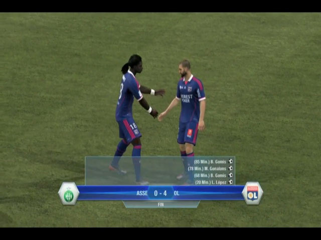 Et le derby ASSE - OL de samedi était bien sûr disputé par l'intelligence artificielle du jeu vidéo. Au final, le score est sans appel : 4-0 pour l'équipe de Rémi Garde. Lisandro, Gomis par deux fois et Gonalons offrent une victoire virtuelle espérée par tous les supporters lyonnais.