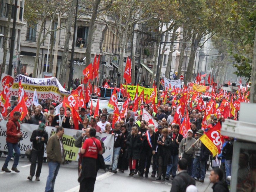 entreprises telles qu'Arkema ou Renault Trucks. La CGT voit plus grand : 10 000 manifestants se seraient rassemblés sous le drapeau du syndicat.