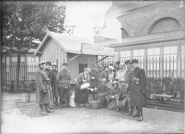 ferroviaire, des boissons froides et chaudes aux soldats français