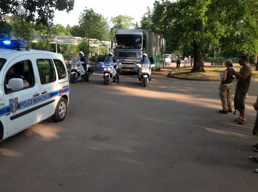 14h : Pour des raisons de sécurité et pour empêcher toute intervention extérieure lors du chargement du convoi, le zoo a été fermé au public.