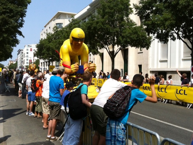 caravane du Tour. Les cyclistes n'arrivent eux que dans une heure.