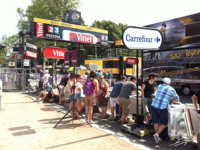 15h09 : Les premiers produits publicitaires de la caravane du Tour commencent à être distribués à Lyon.