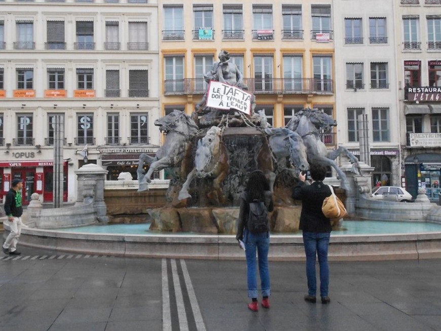 Lyon : des lieux symboliques recouverts de panneaux anti-TAFTA