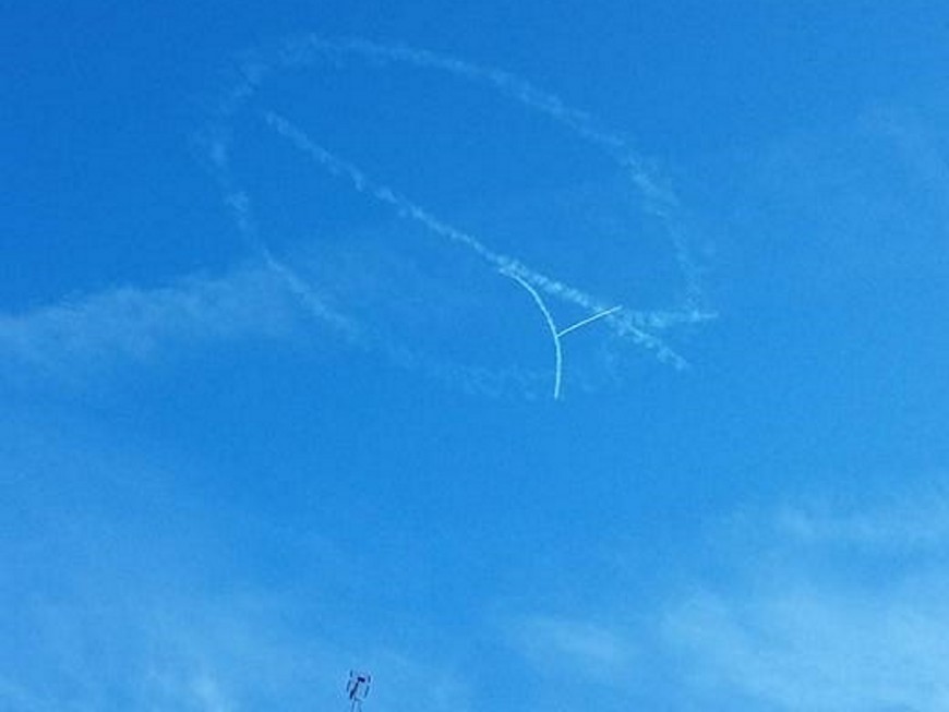 Un avion est à l'origine du dessin. Il est possible que ce soit la start-up Oui'up qui soit l'auteure de ce dessin dans le ciel, nommé "skywriting". L'entreprise avait notamment réalisé ce type de performances en janvier pour rendre hommage aux victimes des attentats à Paris et Charlie Hebdo.