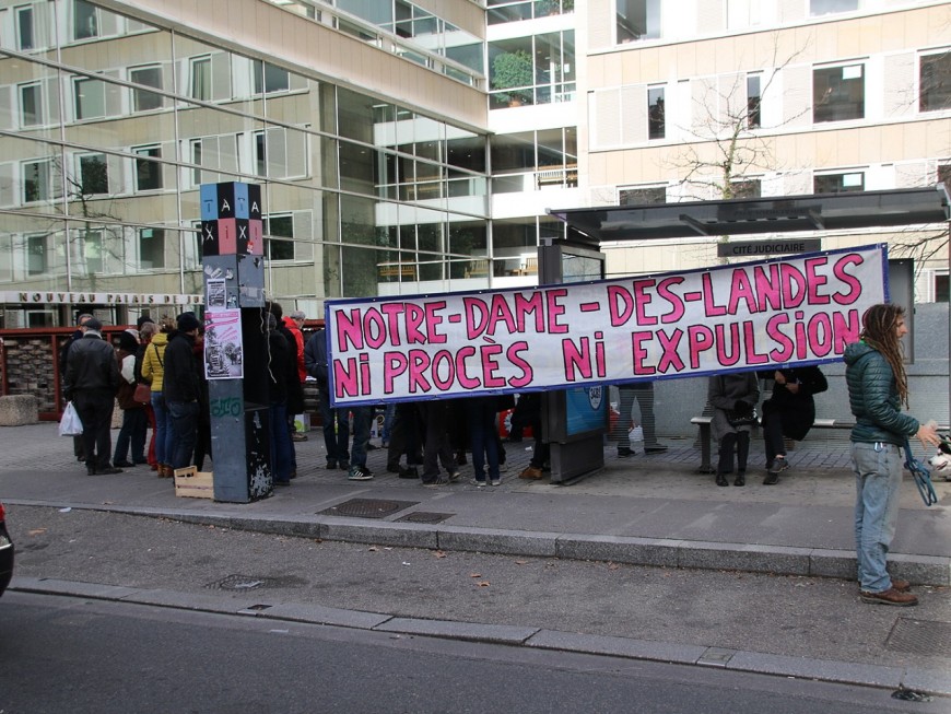 Une référence et un soutien à l'audience de Nantes durant laquelle la demande d'expulsion émanant de Vinci et concernant une quinzaine d'habitants et d'agriculteurs du site qui doit accueillir l'aéroport de Notre-Dame-des-Lande était étudiée à Nantes. La décision de justice sera connue le 25 janvier. D'ici là, de nouveaux mouvements de contestation sont à prévoir.