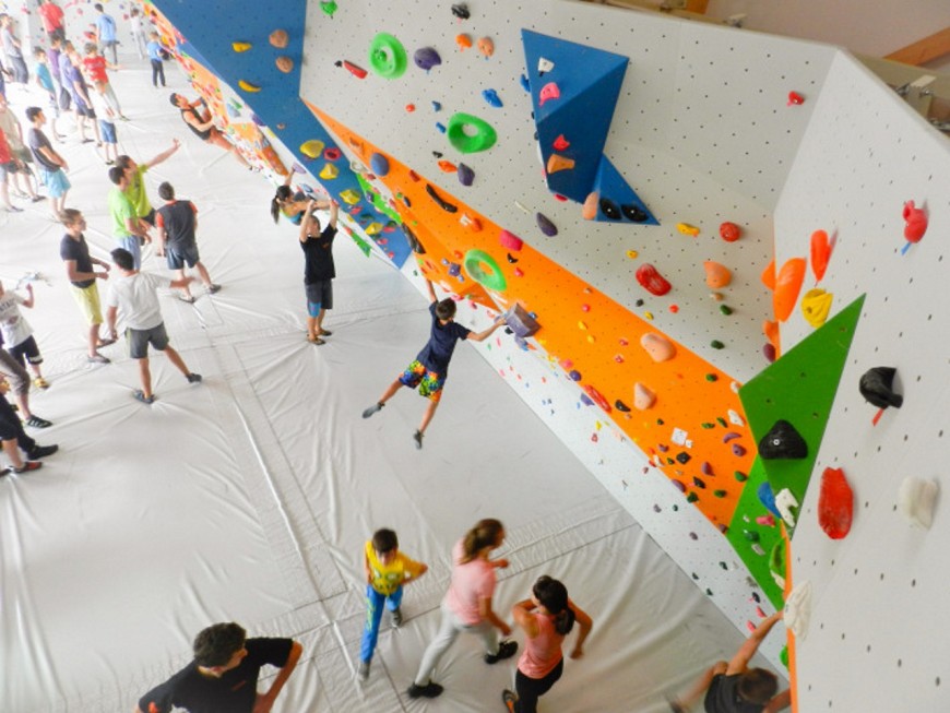 Cette salle est toute neuve, elle a ouvert en 2015 et est un peu spéciale… ! Là-bas, pas de corde, ni de baudriers mais n’ayez crainte pour votre sécurité, le club d’escalade Val’Roc supervise cet atelier et surtout le sol de la salle est un tapis géant de réception (thanks God).