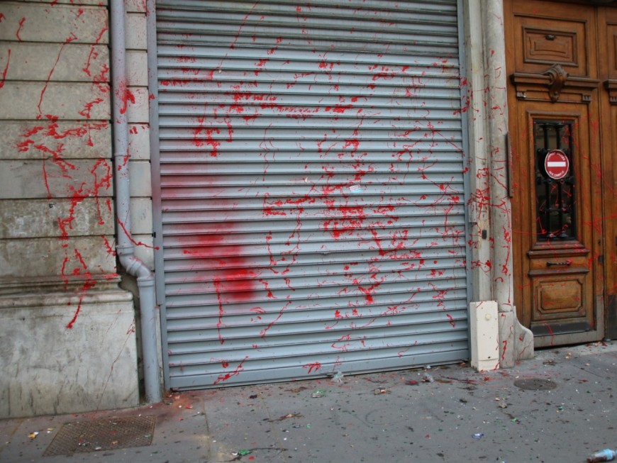 Plusieurs individus ont souillé le rideau métallique de la fédération PS du Rhône, cours de la Liberté dans le 3e arrondissement de Lyon. En effet, l’ensemble de la devanture a été badigeonnée de peinture rouge. Des projectiles, comme des bouteilles en verre et des oeufs, ont également visé le bureau du Parti Socialiste.