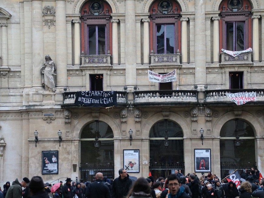 Après une occupation de quatre jours, les intermittents regroupés dans le collectif unitaire 69, ont dû quitter les lieux ce dimanche. En effet le théâtre reprend les spectacles ce mardi. La grande salle dans laquelle se trouvaient les manifestants a dû être libérées, pour recevoir la pièce d’Octave Mirbeau, Les Affaires sont les affaires. Les intermittents se sont déplacés dans une salle du Palais de la Mutualité, sur une proposition de la Ville de Lyon.