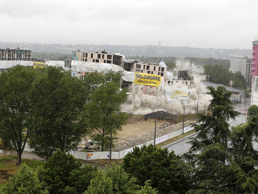 A la place de ces anciens 398 logements détruits à l'explosif, la Ville de Vaulx et la Métropole ont prévu de rénover le quartier. A l'aide d'une école, d'une médiathèque-maison de quartier... voire d'un tramway.