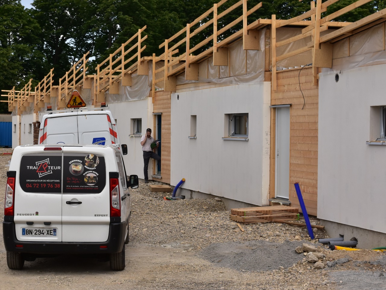Un espace relativement grand sépare les deux rangées : "le but est de leur donner un espace pour qu’ils puissent garer leurs caravanes, auxquelles ils tiennent beaucoup", insiste Catherine Leseigneur, responsable d’opération au Grand Lyon Habitat.