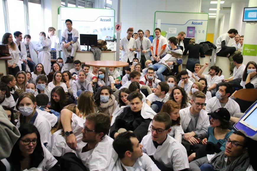 À Lyon, le mouvement a été parfaitement suivi cet après-midi. De façon pacifique et dans la bonne humeur, plus de 100 étudiants ont bloqué la CPAM du Rhône à Jean Macé dans le 7e arrondissement de Lyon, en s’asseyant dans l’accueil du bâtiment.