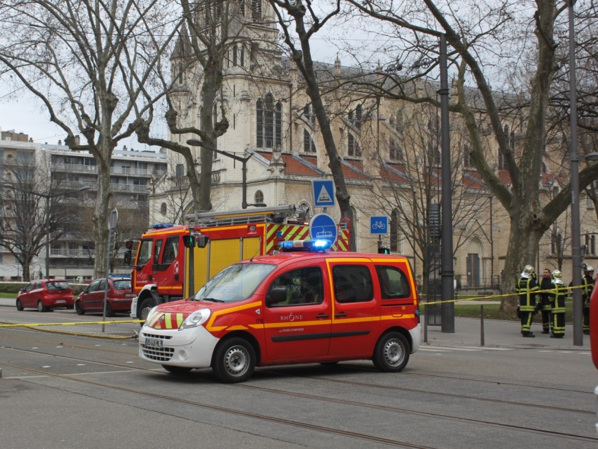 Mise à jour 18h40 : Les pompiers viennent de nous annoncer que la fuite de gaz qui a paralysé le Cours Charlemagne est terminée. Le tramway T1 aux stations Suchet et Saint-Blandine fonctionne de nouveau. Les piétons et les voitures peuvent de nouveau circuler dans cette zone.