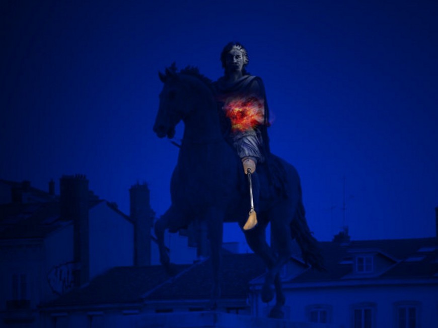 Mais le clou de l'exposition restait la mutilation de Louis XIV. Sur la statue de la place Bellecour étaient projetées des images reproduisant la perte de membres puis la réparation de ces derniers. Une manière de sensibiliser sur les affres des conflits pour les populations civiles.