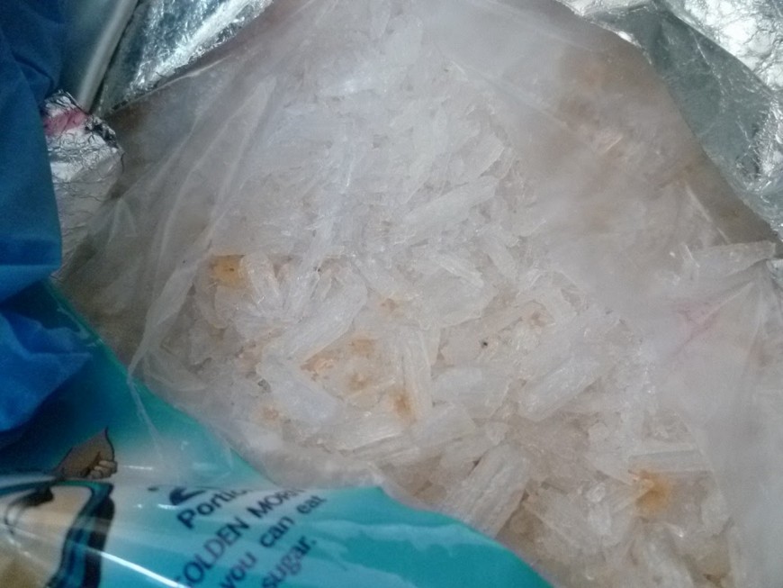 Pas moins de 8,080 kilos de cette drogue de synthèse puissante ont été retrouvés. La marchandise était conditionnée dans des paquets enroulés de scotch et dissimulés dans le double fond d'une valise.