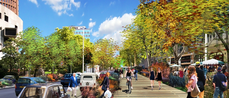 Le maire de Lyon compte en effet bien profiter du succès des berges du Rhône pour faire la différence avec son adversaire Dominique Perben qui avait critiqué ce projet en estimant que c’était une “catastrophe pour Lyon”. L’équipe de Gérard Collomb ayant décidé de permettre aux Lyonnais de redécouvrir leurs fleuves après plusieurs décennies où les berges étaient devenues de simples parkings. Autre projet écolo de Gérard Collomb : une boucle verte reliant le parc de la Tête d’Or au nouveau parc Sergent-Blandan avant de rejoindre les berges du Rhône par la rue de l’Université. Ce qui passe par la restructuration complète de l’avenue Garibaldi (photo ci-dessous) avec la suppression des trémies et des passerelles afin de tout ramener au niveau du sol en créant un mail planté permettant aux vélos et aux piétons de circuler en sécurité. Une allée permettra aussi de rejoindre la caserne Sergent-Blandan devenu un parc urbain avec un certain nombre d’aménagements sportifs. Mais Collomb veut aussi créer trois nouveaux parcs : deux dans le 9e arrondissement, à la Duchère avec l'aménagement du vallon qui descend jusqu'à Vaise et d'une reserve de biodiversité aux Créssonières, mais aussi à la Garde dans le 5e.