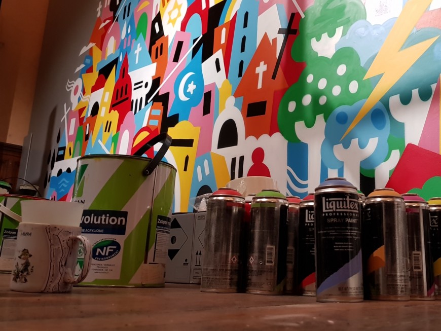 Libres dans leur travail, la vingtaine de graffeurs, sculpteurs ou photographes a pu laisser libre cours à sa créativité. Si certains ont créé des œuvres totalement exemptes de religiosité, d'autres se sont essayé à une peinture emprunte de religieux, mais toujours avec la vision de l'artiste de rue. "La religion est un sujet fort, donc c'est sûr que c'est inspirant", a expliqué Guillaume.