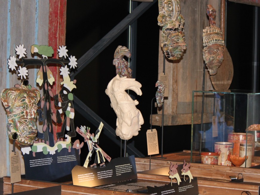 Divers objets acquis par le couple Sève (http://chocolatseve.com/) en Amérique du Sud et en Amérique Centrale mais aussi des vidéos illustrent les différentes étapes du voyage et la fabrication, de la matière première au produit fini. Les fèves se dégustent dans tous les états et les yeux découvrent en même temps le travail des artisans chocolatiers.
