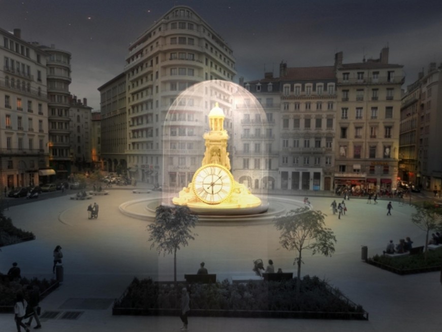 Quand une fontaine devient une horloge, la fontaine des Jacobins sera détournée et vous donnera l’heure plutôt que de l’eau. Une pelleteuse se transformera en aquarium dans le quartier Grolée et une machine lumineuse et sonore aux formes épurées, couverte de grosses ampoules, transportera les Lyonnais dans les années 70 sur la place de la Bourse.