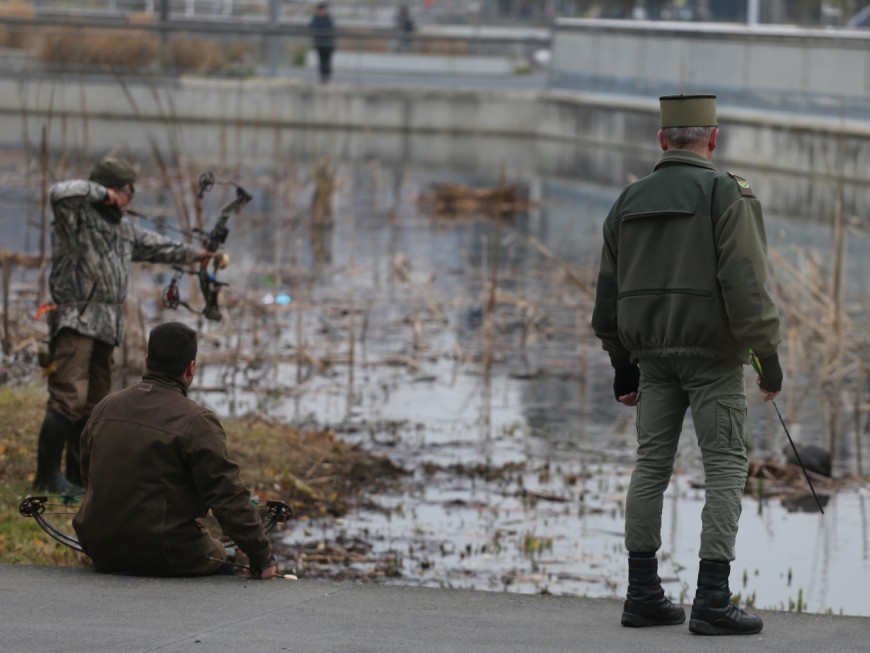 Ce matin, les chasseurs sont donc venus équipés d'arcs pour tuer les bêtes. L'usage d'une telle arme est destiné à éviter les coups de feu, qui pourraient rapidement inquiéter les ragondins ainsi que les habitants et passants.