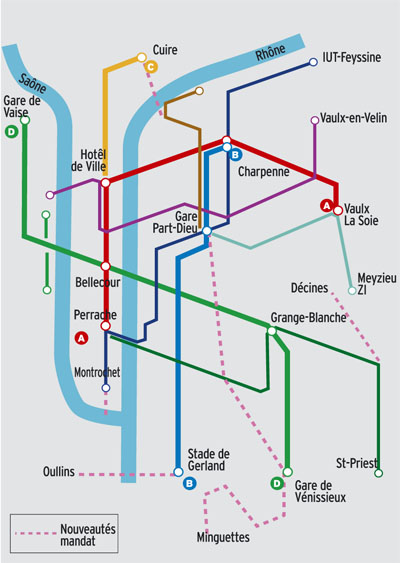 “On va prolonger la ligne B du métro, de Gerland à Oullins-La Saulaie. Soit 1,4 km. Ce qui va coûter 220 millions d’euros et qui permettra de desservir une partie du sud-ouest de l’agglomération d’ici à 2010. On veut aussi améliorer la capacité du métro. D’ailleurs, depuis début octobre, on teste une nouvelle rame sur la ligne D, avec une dizaine de places assises en moins, pour gagner de l’espace, mais aussi faciliter la montée et la descente des voyageurs. Toutes les lignes de métro seront donc relookées d’ici 2014. Et on aimerait également automatiser la ligne B.”