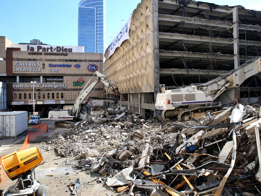 Inexorablement, les engins grignotent le béton. Lancé il y a peu, le chantier de déconstruction du parking 3 000 avance. Plusieurs machines, dont une pelle de 100 tonnes, sont mobilisées afin de faire place nette. Cinq mois de travail seront nécessaires afin de démolir les sept étages de l'ouvrage, construit dans les années 70. Près de 40 000 tonnes de gravats devront être dégagées. Une partie sera triée sur place avant d'être extraite par camion pour être recyclée.